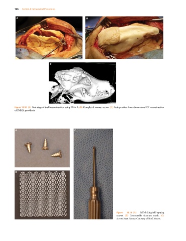 screws. (B) Contourable titanium mesh. (C)