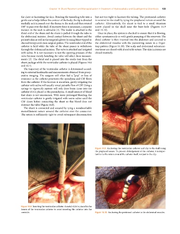 catheter is held while the tube of the shunt passer is withdrawn trap pattern (Figure 14.10). The scalp and abdominal subcutane-