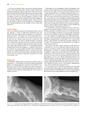 Figure 15.1 (A) Lateral cervical radiograph shows increased distance between the dorsal arch of C1 and the spinous process of C2 diagnostic for AAS. The
