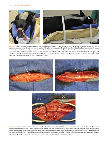cranially as depicted here, but for approaches to the caudal cervical and cranial thoracic vertebrae it may be advantageous to cross the thoracic limbs ventral