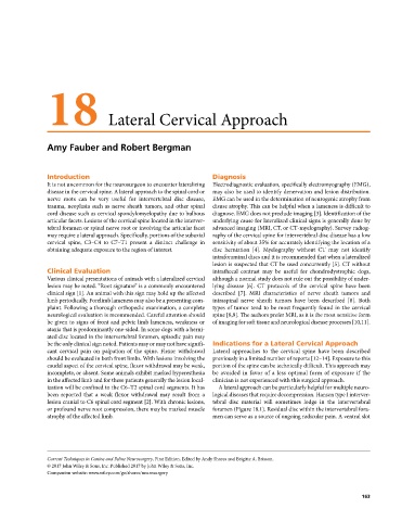be the only clinical sign noted. Patients may or may not have signifi- Indications for a Lateral Cervical Approach