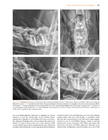 allograft disc spacer. (A, B) Immediate postoperative orthogonal radiographs showing the fixation with triangular screw pattern and placement parallel to