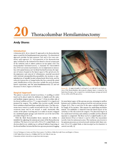 prepared for surgery. The midline skin incision usually extends between each vertebra, then going around the next spinous process