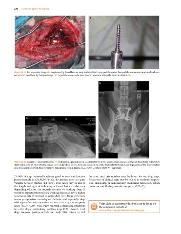 Table 26.1 Summary of the recent studies evaluating surgical outcomes in dogs with DLSS.