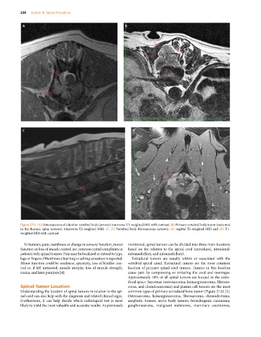 Understanding the location of spinal tumors in relation to the spi- common types of primary extradural bone tumor (Figure 27.6) [5].