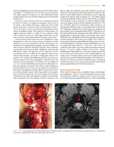 with humans, most spinal meningiomas are grade I and are usually recommended in addition to surgery or when surgery is not possi-