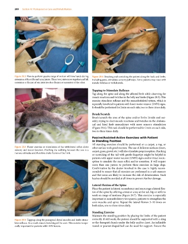 Figure 29.3 How to perform passive range of motion with two hands during Figure 29.6 Brushing and scratching the patient along the back and limbs,