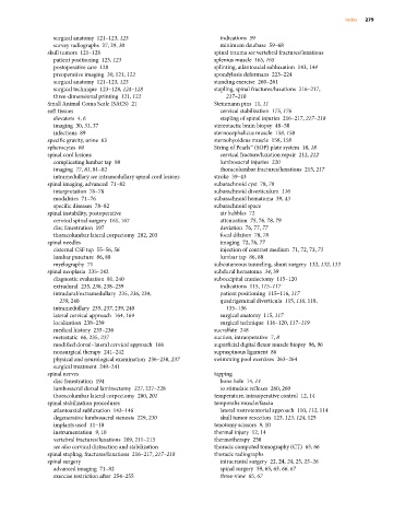surgical technique 123–128, 124–128 stapling, spinal fractures/luxations 216–217,
