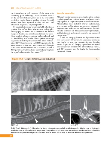 vertebral column (a). CT myelographic images more clearly define multiple incomplete and misshapen vertebra and fusion of multiple