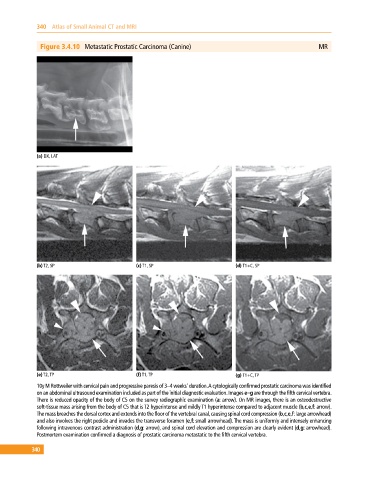 10y M Rottweiler with cervical pain and progressive paresis of 3–4 weeks’ duration. A cytologically confirmed prostatic carcinoma was identified
