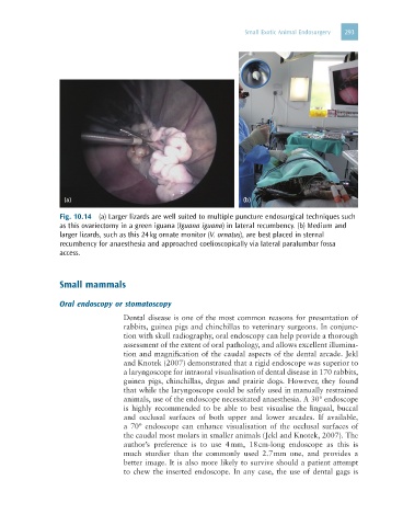 Fig. 10.14  (a) Larger lizards are well suited to multiple puncture endosurgical techniques such