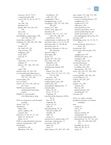 238, 300 operating table, 47, 48, 68, 86 ovarian remnant, removal, in a