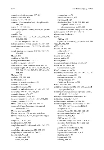 Monte Carlo analysis, 123, 656, 770–771 mummichog (Fundulus heteroclitus), 44, 204,