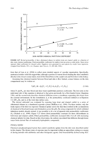 skin–water chemical partitioning. Fitted permeability coefficients for rainbow trout are given as solid circles. Open circles