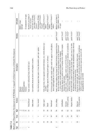 Feature — — — — Neural/brain a Optic buds a Otic vesicle a Optic cups a Heart a Heartbeat a Liver anlage Gallbladder Gut tube CYP3A activity Hepatic tubules Pancreas CYP1A activity