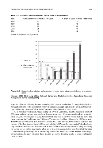 table 25.1 Changing % of National Dairy herd in Small vs. Large Dairies