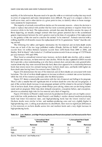 table 25.2 Low-, Medium-, and high-Producing herds and Percent annualized Live removal and On-Farm