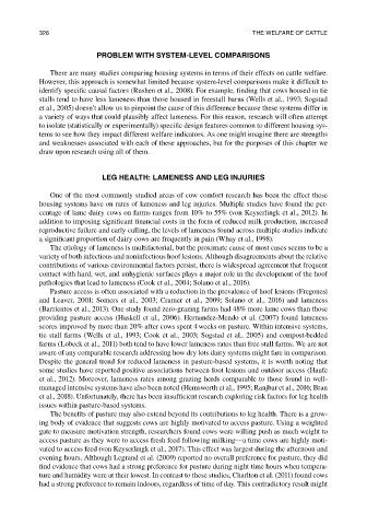 housing systems have on rates of lameness and leg injuries. Multiple studies have found the per-