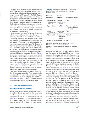 Oxygen levels in arterial blood can never exceed Table 5.6. Physiological differentials for hypoxemia