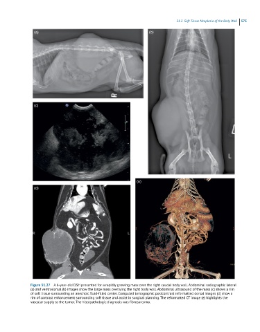 Figure 31.27 A 6-year-old DSH presented for a rapidly growing mass over the right caudal body wall. Abdominal radiographic lateral