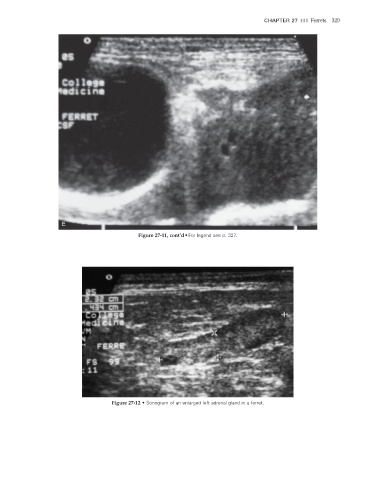CHAPTER 27 III Ferrets 329 E Figure 27-11, cont’d • For legend see p. 327. Figure 27-12 • Sonogram of an enlarged left adrenal gland in a ferret. 2/11/2008 11:44:06 AM ch027-A02527.indd 329 2/11/2008 11:44:06 AM ch027-A02527.indd 329