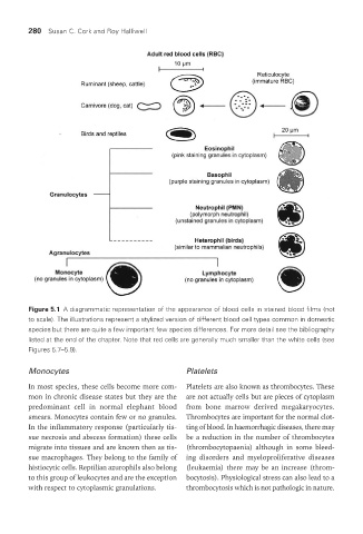 Figure 5.1 A diagrammatic representation of the appearance of blood cells in stained blood films (not