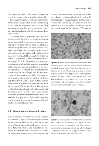 the normal range of haematological profiles Figure 5.7 Poor quality bovine blood smear stained