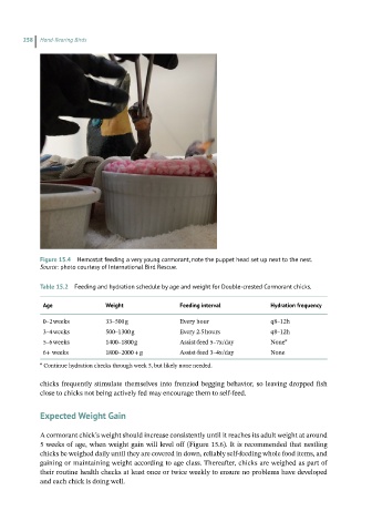 Table15.2 Feeding and hydration schedule by age and weight for Double-crested Cormorant chicks.