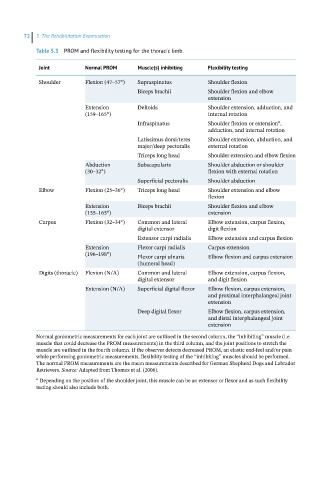 Table 5.3 PROM and flexibility testing for the thoracic limb.