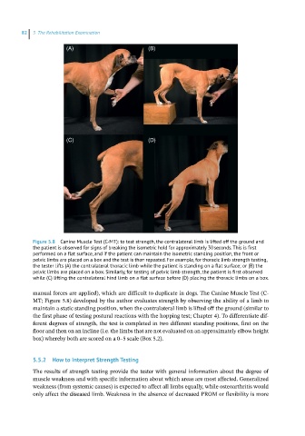 Figure 5.8 Canine Muscle Test (C-MT): to test strength, the contralateral limb is lifted off the ground and