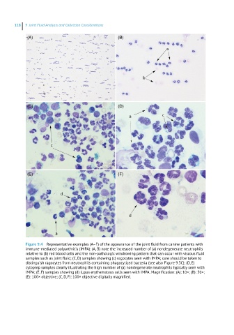 Figure 9.4 Representative examples (A–F) of the appearance of the joint fluid from canine patients with