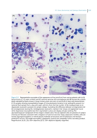 synovial fluid sample from a dog with septic arthritis. Note the high number of (b) nondegenerate to (c)