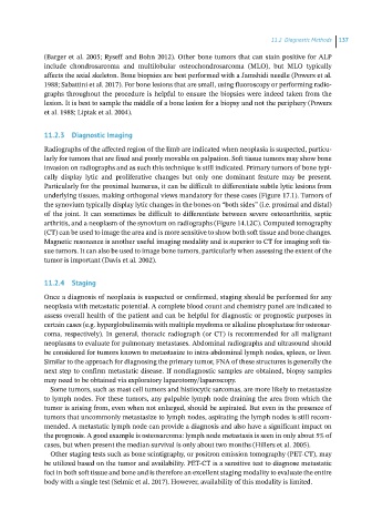 Radiographs of the affected region of the limb are indicated when neoplasia is suspected, particu-