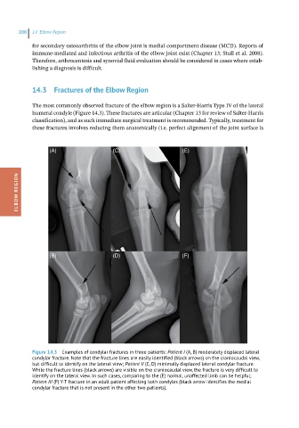 humeral condyle (Figure 14.3). These fractures are articular (Chapter 13 for review of Salter-Harris