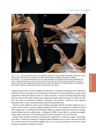 other diagnostics. In unilaterally affected dogs, abduction angles should be evaluated by compar-