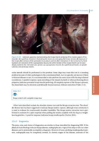 Other tests described include the shoulder drawer test and the biceps retraction test. The shoul-