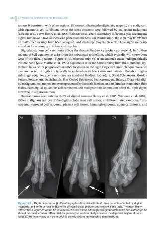 Figure 17.1 Digital neoplasia: (A–C) radiographs of the distal limb of three patients affected by digital