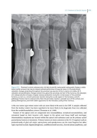 Figure 17.2 Proximal humeral osteosarcoma: (A) lateral and (B) craniocaudal radiographs display a subtle