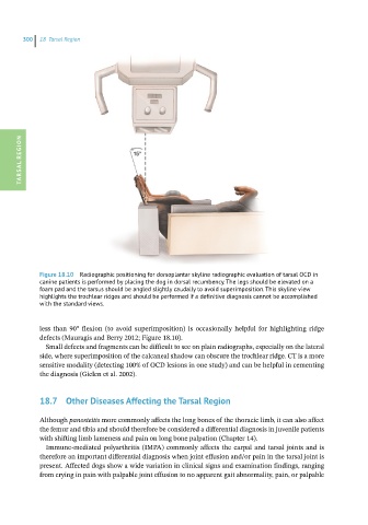 Figure 18.10 Radiographic positioning for dorsoplantar skyline radiographic evaluation of tarsal OCD in