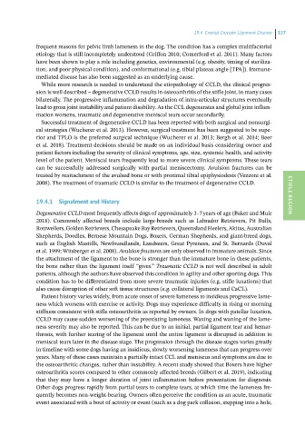 sion is well described – degenerative CCLD results in osteoarthritis of the stifle joint, in many cases