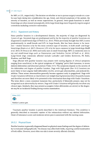 the deformities and degree of patellar luxation. Dogs with high-grade (Box 19.2) luxations are
