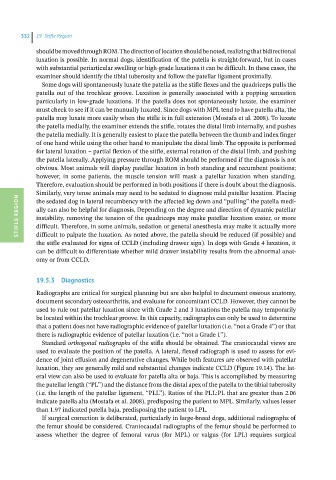 STIFLE REGION  ally can also be helpful for diagnosis. Depending on the degree and direction of dynamic patellar