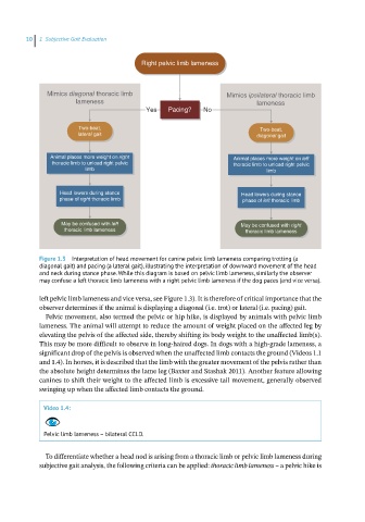 subjective gait analysis, the following criteria can be applied: thoracic limb lameness – a pelvic hike is