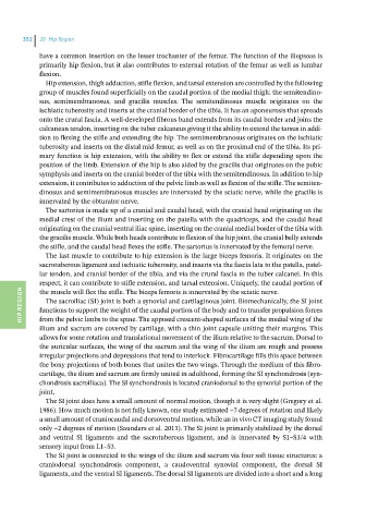 symphysis and inserts on the cranial border of the tibia with the semitendinosus. In addition to hip