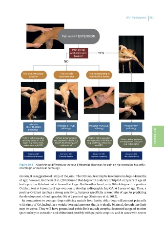 motion, it is suggestive of laxity of the joint. The Ortolani test may be inaccurate in dogs <4 months
