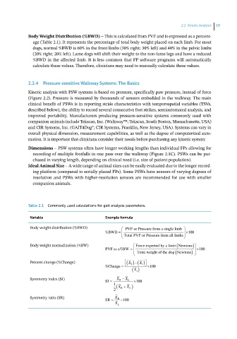 Table 2.1 Commonly used calculations for gait analysis parameters.