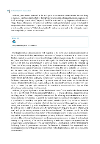 of motion). The text below, Table 3.2, and Video 3.1 outline the approach to the orthopedic exami-