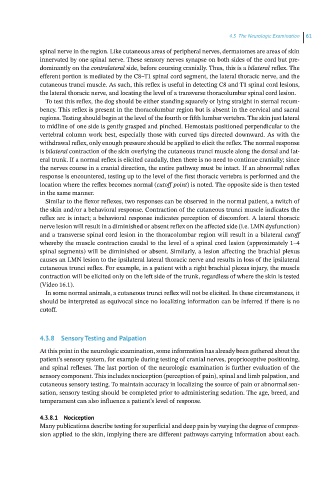 sensory component. This includes nociception (perception of pain), spinal and limb palpation, and