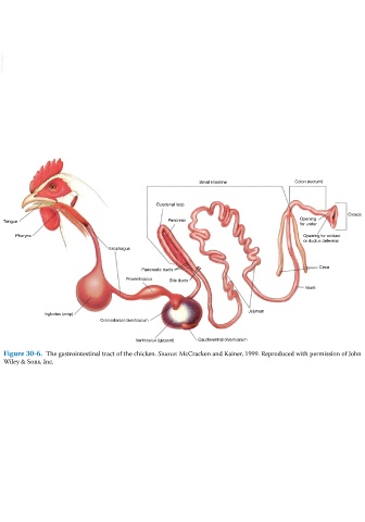 Figure 30-6. The gastrointestinal tract of the chicken. Source: McCracken and Kainer, 1999. Reproduced with permission of John