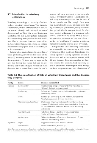 Table 3.9 The classification of ticks of veterinary importance and the diseases